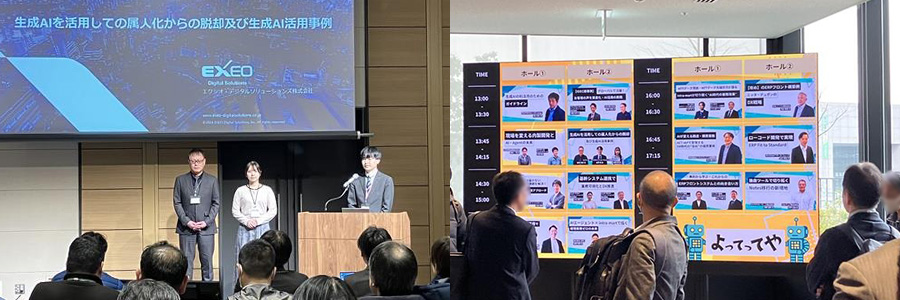 2026年3月25日 エクシオ・デジタルソリューションズ株式会社(本社:東京都港区、代表取締役社長:前田 幸一)は、2026年2月20日(金)に大阪で開催された「よってってや!~intra-mart×生成AIによる無限大の可能性と活用最新事例~」に出展しました。