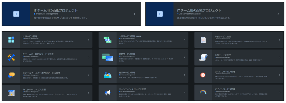 サービス管理のベストプラクティスに基づいて、ワークフロー、フォーム、設定があらかじめ用意されたカスタムテンプレートのいずれかを選択することで、すぐに利用を開始できます。