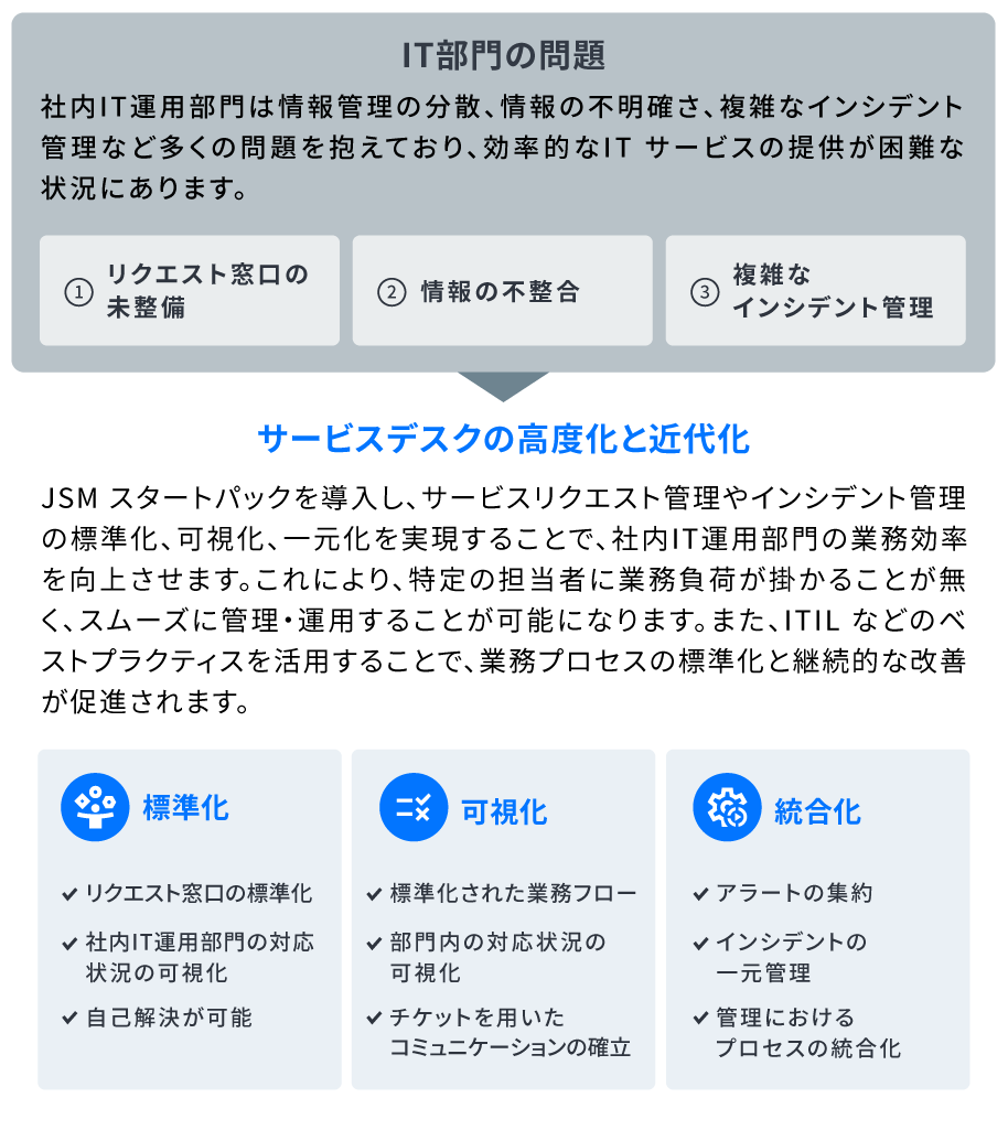 - 業務プロセスの標準化とJira Service Managementによる一元管理