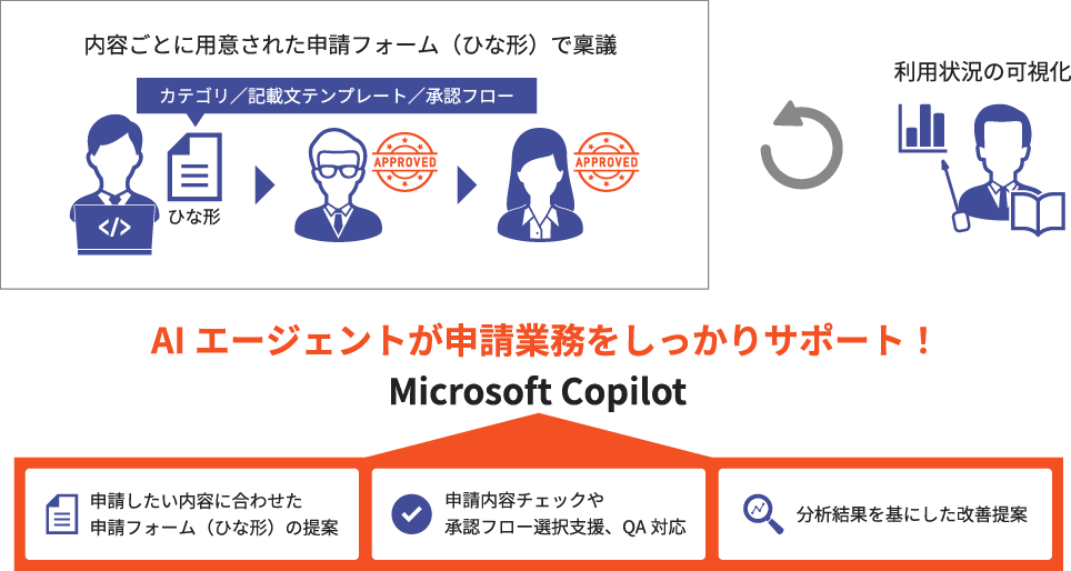申請フォームごとの差し戻し率などから、導入効果や改善点を分析