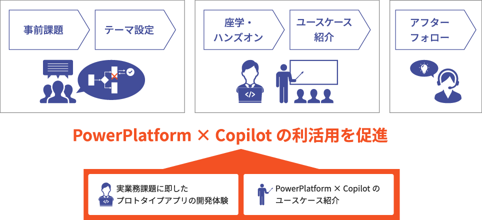 お客様の実業務課題にクローズアップしたカリキュラムで、PowerPlatform利活用の最大化と、内製による業務効率化をサポート!